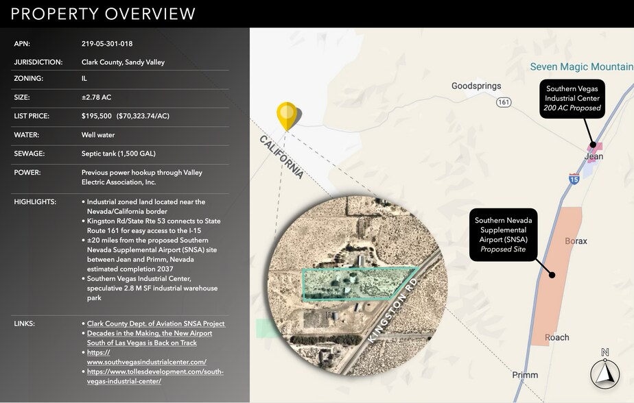 - Près du Southern Vegas Industrial Center, un parc d'entrepôt industriel spéculatif de 2,8 M de terrain situé à Jean, au Nevada