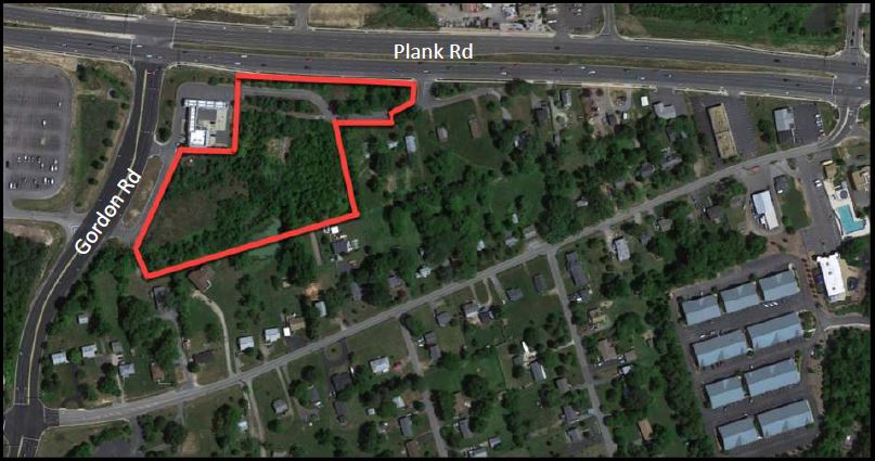Land with visibility along Rt. 3 / Plank Road with 53,000 VPD • Accessible from both Gordon Road and Plank Road • Water and sewer are available • Located on a heavily travelled route in a dense residential area • Close to restaurants and other retail