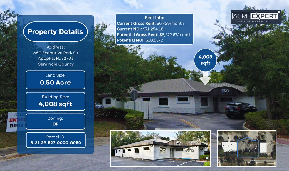 - 4,008 SF Medical Office Building – Three-unit configuration on 0.50 acres with flexible tenant options.
