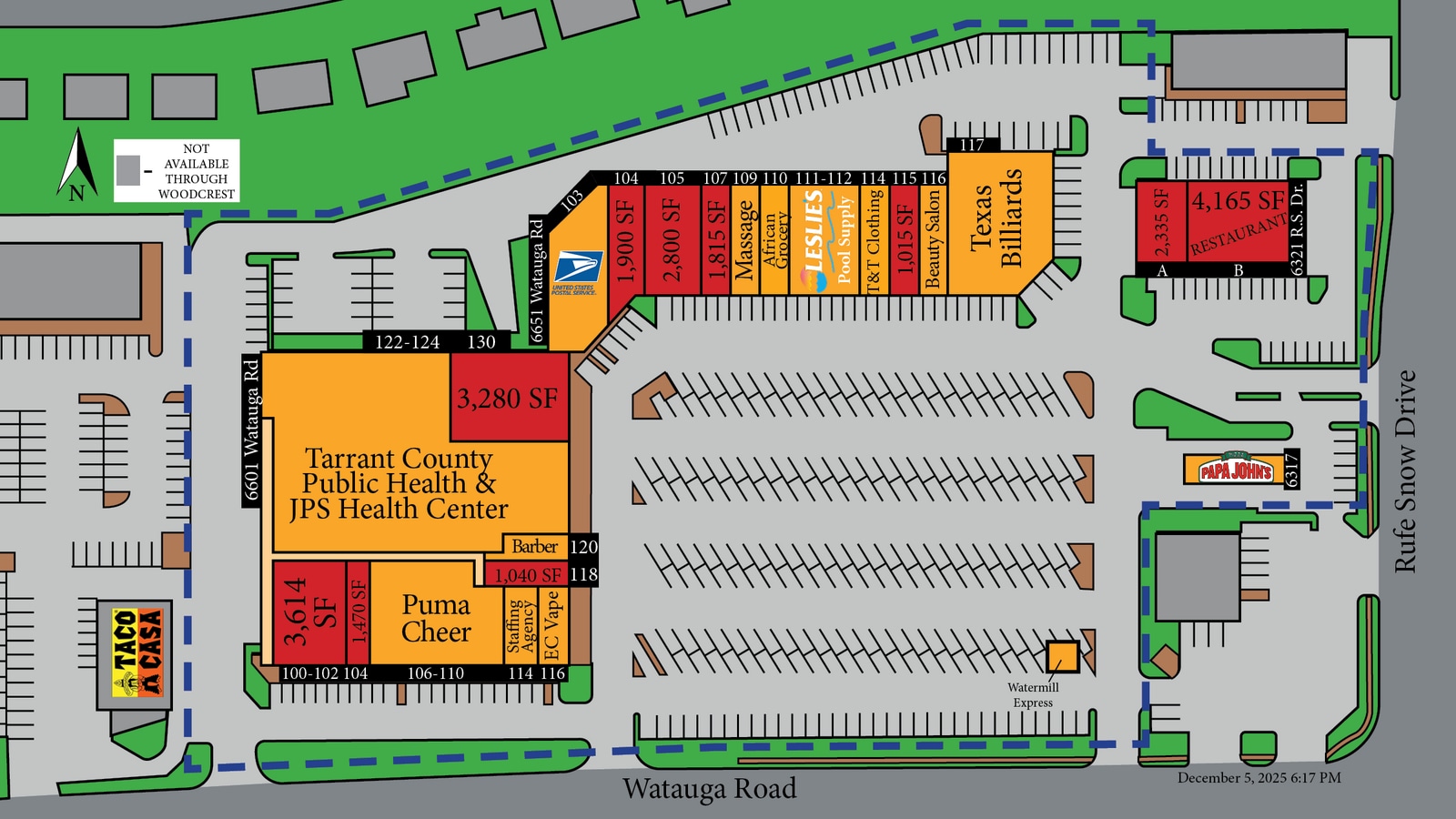 Watauga Marketplace est un centre commercial d'environ 72 000 pc situé à l'intersection achalandée de Rufe Snow Drive et Watauga Road. Ce centre a été récemment rénové et les locataires comprennent des restaurants locaux, des détaillants de services de quartier et des détaillants nationaux. Les suites commerciales de ce centre sont disponibles à la location pour tout, des magasins de détail traditionnels et des restaurants aux bureaux, en passant par les fournisseurs de services médicaux ou autres professionnels. Woodcrest Capital accueille les entreprises pour la première fois et franchises dans ses centres avec des baux faciles à lire et des modalités flexibles. Woodcrest est aussi suffisamment sophistiqué pour plaire au plus grand des locataires du crédit national. En tant qu'entreprise familiale ayant plus de 40 ans dans l'immobilier commercial, Woodcrest possède et exploite tout, des centres de classe A dans les quartiers les plus achalandés aux centres en difficulté qu'elle réhabilite dans les collectivités rurales en difficulté. Appelez-nous dès aujourd'hui pour trouver le bon endroit pour votre entreprise, car nous avons généralement de multiples occasions de vente au détail dans les environs immédiats !