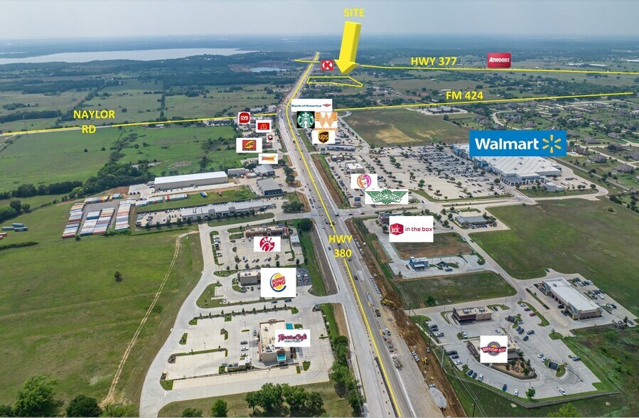 UN BÂTIMENT COMMERCIAL DE 2204 PI2 DE CLASSE C EST PRÊT À ÊTRE UTILISÉ PAR LES LOCATAIRES. 6.64 ACRES COMMERCIAUX DE DÉTAIL C-2 SUR UNE GRANDE ARTÈRE DFW (ROUTE 380) PRÈS DE WALMART, AVEC 3 ALLÉES D'ACCÈS EXISTANTES À PARTIR DE L'AUTOROUTE 380 DISPONIBLES POUR LE DÉVELOPPEMENT COMMERCIAL - (extrêmement difficile d'obtenir un point d'accès accordé de TXDOT pour une façade d'une route d'État) SITUÉ PRÈS D'UNE INTERSECTION IMPORTANTE DE L'AUTOROUTE 380 ET DE L'AUTOROUTE 377
