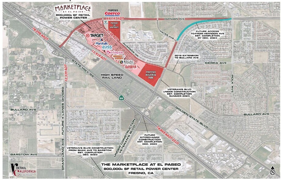 Ce centre d'alimentation Target ancré est idéalement situé dans le nord-ouest de Fresno et dessert Fresno, Madera, Kerman et le corridor Freeway 99 avec 750 000 pi2 de vente au détail Big Box, Lifestyle Retail, Restaurants et services sur plus de 75 acres. Coin sud-ouest de l'avenue Herndon et de la promenade Riverside à Fresno, en Californie.