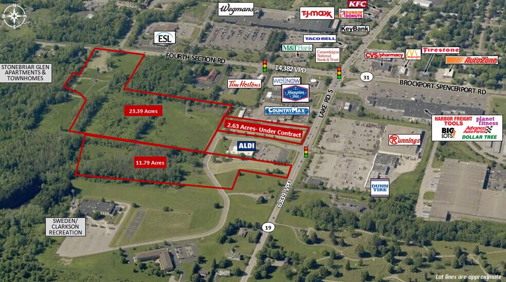 Au centre de la zone commerciale de Brockport, à proximité de grands détaillants tels que Wegmans, TJ Maxx, Runnings, Big Lots, Aldi et bien plus encore. Comprend plus de 26 000 personnes dans un rayon de 5 milles (non desservi par une autre zone de vente au détail dans ce rayon). À quelques minutes de l'école secondaire Brockport (1 070 élèves +/-) et SUNY Brockport (8 200 +/- élèves). Dans le Zonage commercial B-1 de détail.
