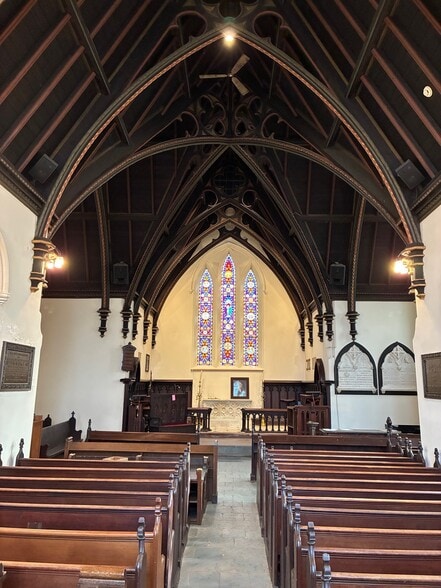 The sanctuary space (±1,950 SF) is breathtaking while also remarkably intimate. The space has a capacity of approximately 175 people. Connected by a stone corridor, there is an additional gathering space (±1,000 SF) with a stage. The structure is adorned with ivy brought from Scotland, which was planted by Washington Irving.