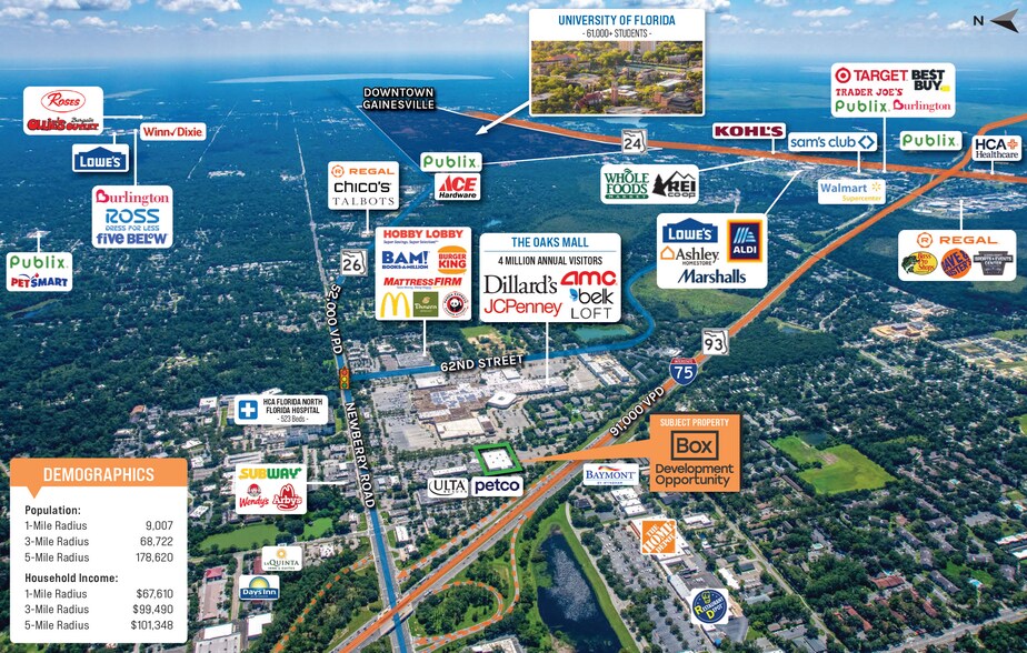 ±40,000 SF Box Redevelopment Opportunity | ±1.72 AC Parcel with Access to Ample Parking Spaces | Ideal Visibility from I-75 (91,000 VPD) & Newberry Rd (52,000 VPD)