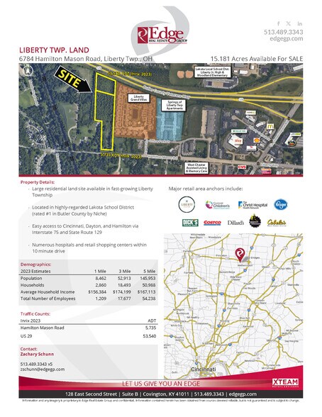 - Les principaux points d'ancrage de la zone de vente au détail comprennent : Liberty Center, Cincinnati Children's Hospital, The Christ Hospital, Kroger, Cabela, Costco et Dillard's