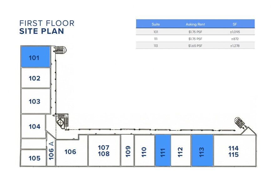 | 1er étage, ste 101 | 1 095 pi² | Négociable | Sur demande Sur demande Sur demande Sur demande | À déterminer | ||