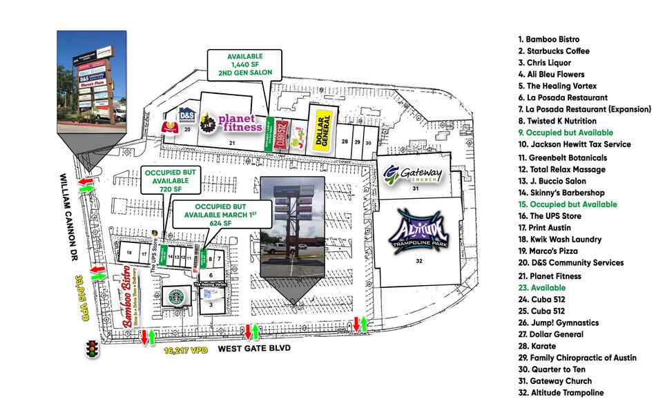 - William Cannon Drive sees 33,815 daily passing vehicles and West Gate Boulevard sees 16,217 daily passing vehicles.