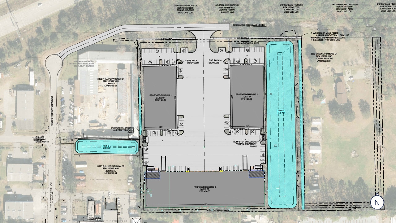 GATEWAY SOUTH INDUSTRIAL is a forthcoming Class A industrial development located in south Duval County at the convergence of Interstate 95, Interstate 295 and U.S. Highway 1. Designed to meet modern logistics and light industrial demands, the project will deliver approximately 112,010 square feet across three highly efficient buildings with flexible demising, modern clear heights and best-in-class loading configurations. Gateway South Industrial offers tenants a rare opportunity to secure new construction space in one of Jacksonville’s most supply-constrained industrial corridors. This is a planned three-building Class A industrial park designed to serve a wide range of industrial, distribution and service users. The development will feature concrete tilt-wall construction, efficient shallow-bay layouts and a mix of grade-level and dock-high loading to support flexible tenant operations. The site is planned with centralized loading, generous truck court depth and ample on-site parking, addressing the functional limitations commonly found in older industrial inventory throughout the Butler Corridor. Buildings will offer 20’ to 28’ clear heights, modern column spacing and demising flexibility to accommodate tenants ranging from local operators to regional distribution users. Upon delivery, Gateway South Industrial will represent one of the few opportunities to lease new construction industrial space in a highly infill location where land constraints and entitlement barriers continue to limit new supply.
