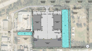 Total Building SF: 56,810± SF Minimum Divisible: 28,405± SF Office: 1,300± SF per 28,405± SF Building Dimensions: 130' x 230' Column Spacing: 54' x 60' Clear Height: 28' clear Configuration: Front load Drive In Doors: 2 (12' x 14') Dock Doors: (8) 9' x 10' (w/ 10 additional knockouts) Dock Package: Hydraulic levelers, 6' x 8', 40,000 lb; dock seals Sprinkler: Wet Electric Service: 400A, 277/480v, 3p, 4wire Lighting: LED Roof Material: 60 mil TPO Insulation: R-20 Windows: Clerestory - 8 (8’ x 2') Warehouse Air Exchange: Exhaust fans & louvers, & electric heaters Slab: 6", 4000 PSI, reinforced