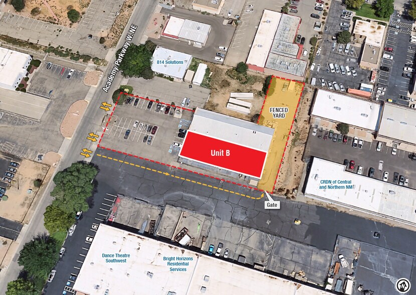 Located in the Academy Parkway Industrial & Office Park Former consumables manufacturing space Commercial-grade kitchen equipment 3-phase, 600-amp power 9’x10’ grade-level, roll-up door Warehouse area has 10’ ceiling heights Controlled-temperature storage room Two private offices, conference room, three restrooms, and reception area