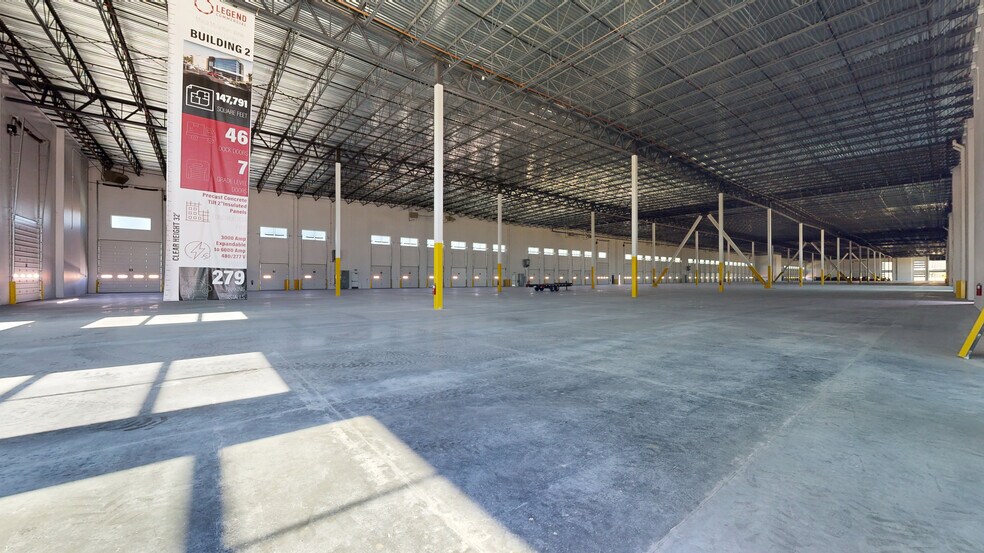 - Entrepôts dotés de portes de niveau de 14 pi x 16 pi, de portes de quai de 9 pi x 10 pi, d'une baie transparente de 32 pi, d'une baie de vitesse de 60 pi et d'une alimentation triphasée à 4 fils de 5 000 ampères, 480 ou 277 volts.