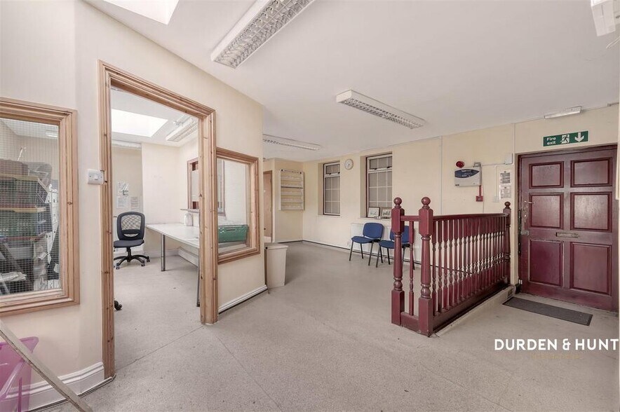 To the rear of the property, there is a private garage, offering valuable additional storage or off street parking. The building’s corner plot position ensures excellent visibility and natural light throughout, enhancing its appeal to businesses seeking a well located and adaptable commercial space.