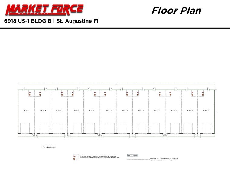 Market Force CRE, as exclusive advisor, is pleased to present 6918 US-1N to the market. Phase II offers brand-new flex/industrial space along the US-1 North corridor in St. Augustine, with units of 1,300 SF up to 16,000 SF available. This project delivers in mid-2026 and provides modern construction, efficient layouts, and flexible unit sizes suitable for a wide range of industrial and service-oriented users.