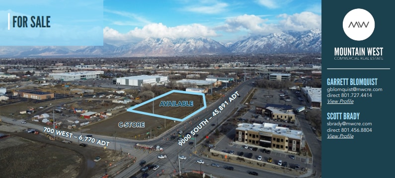 Disponible à la location ou à la vente au sol. Possibilités de conduite en voiture. Situé à l'angle dur de l'intersection décalée sur le 90e sud à Sandy. Stratégiquement situé à proximité de l'autoroute I-15 à 90th South, cet emplacement permet un recrutement et un maintien en poste optimaux des employés - avec un accès facile au nord du comté d'Utah et à tout le comté de Salt Lake.