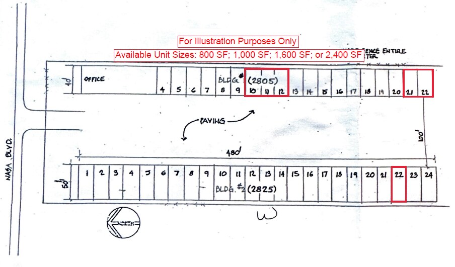 - Available Units: 800 SF ($1,100/month); 1,000 SF ($1,375/month); 1,600 SF ($2,200/month); 2,400 SF ($3,300/month)