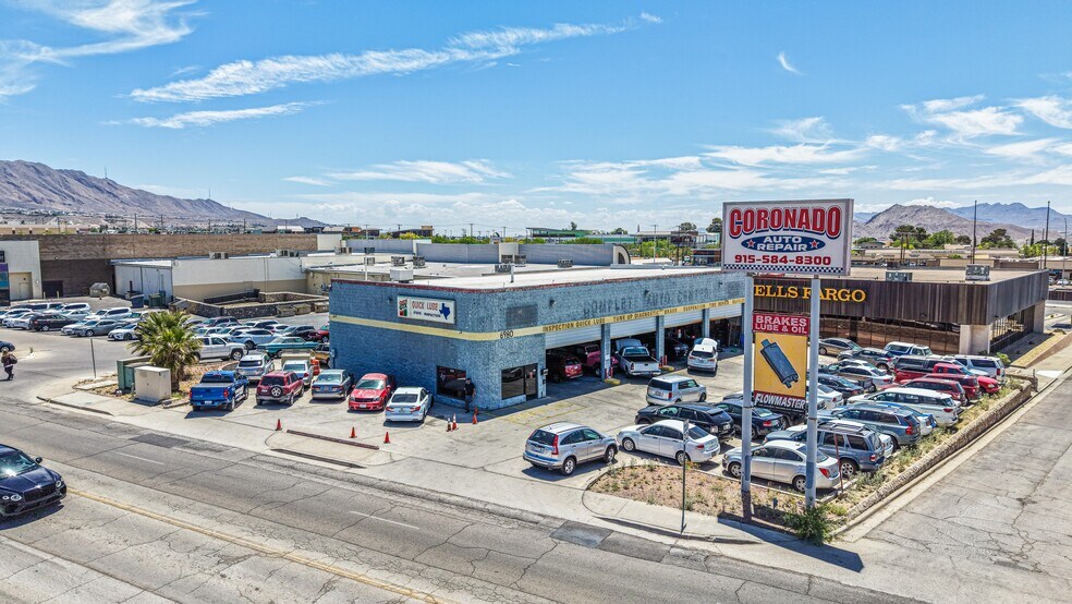 Prime West El Paso automotive service opportunity located at 6980 Cloudview Dr. This highly visible corner property offers approximately 5,240 SF of functional service-commercial space with 4 service bays, exceptional frontage, strong signage presence, and ample on-site parking. Positioned in a top-tier westside location near major retail and commercial traffic generators, the property benefits from excellent accessibility, strong daily traffic exposure, and a layout well suited for automotive repair, quick lube, tire, brake, inspection, or other service-oriented uses. The site’s established automotive identity, generous parking field, and prominent pylon signage create a rare leasing opportunity for an operator seeking immediate market presence in one of El Paso’s most desirable commercial corridors.