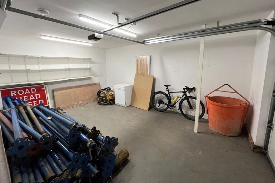 La propriété comprend une unité commerciale située en bout de terrasse, répartie sur le rez-de-chaussée et le premier étage. La propriété a été entièrement rénovée en 2017, et une visite intérieure est fortement recommandée pour apprécier l'espace disponible. Le rez-de-chaussée comprend une zone de stockage accessible par une porte électrique basculante, une cuisine ainsi que des installations sanitaires pour hommes et femmes. Au premier étage, on trouve des bureaux bien aménagés, principalement en espace ouvert. Les bureaux sont chauffés et climatisés grâce à un système de climatisation et bénéficient d'un bon éclairage naturel.
