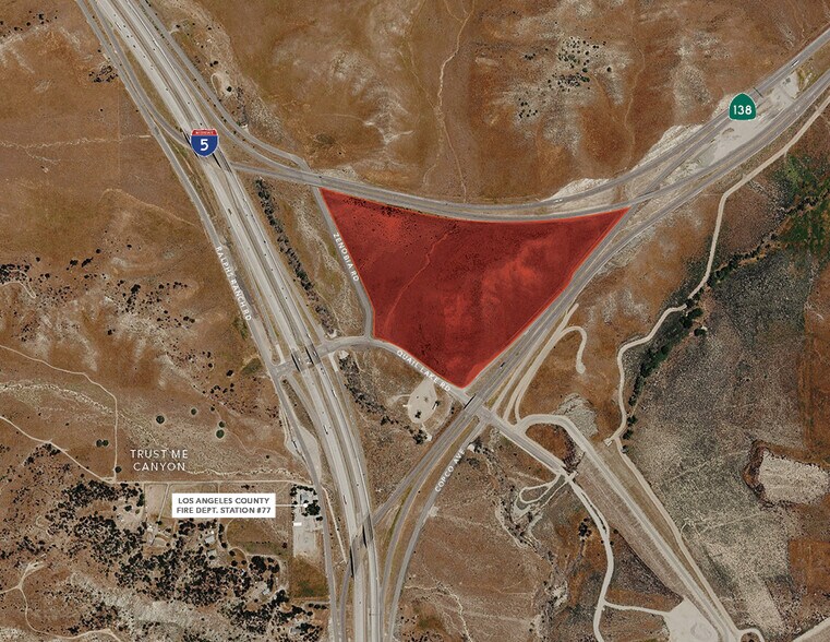 We are pleased to present a unique opportunity consisting of ±13.21 acres of primarily flat commercial land along the 5 Freeway at the intersection of Highway 138. With 3 freeway off-ramps/on-ramps directly onto the property, the property, which has already paved roads, is well-positioned for a developer to take advantage of the 250,000+ vehicles per day traveling along one of the busiest freeways in the world that provides access to Los Angeles ports, Central Valley agricultural businesses, San Francisco tech hubs, and the entire West Coast. Ownership has a land use survey completed by David Evans and Associates, Inc. which can be made available for qualified buyers. Potential uses include hotels/motels, drive-through services, utility-scale solar energy, along with a myriad of other options, which the Buyer shall rely on their own due diligence and investigations to confirm in full. With nearby future developments including the fully entitled 12,000+ acre Centennial at Tejon Ranch Master Planned Community approximately 3 miles away, which include 19,000+ homes and 10M+ square feet of retail/public/business park/office space/civic development, the next owner of these parcels may be well positioned for significant growth over the coming years. Also nearby is Pyramid Lake only 5 miles to the south, and the Tejon Ranch Commerce Center just 8 miles to the north. APN's included are: 3252-011-016, 3252-011-023, 3252-011-022. Seller financing available for qualified buyers! Contact the listing team today for additional information regarding this unique opportunity.