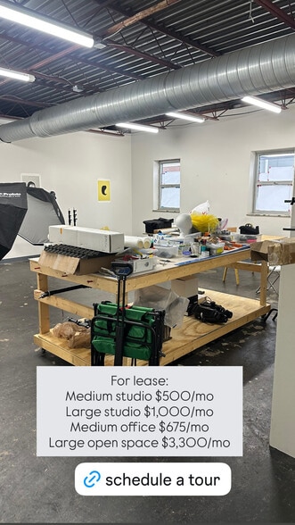 Artist studio or creative space Industrial done with open ceiling and concrete floors Photography studio is a great use