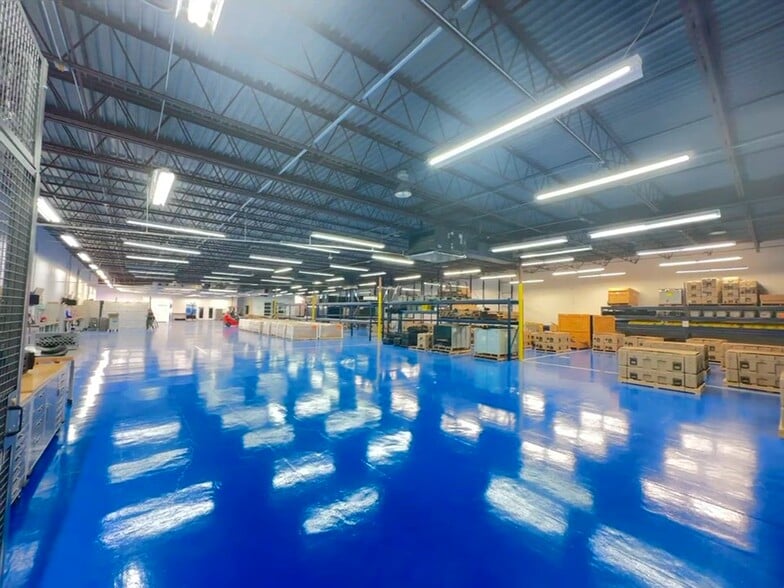 Super clean stand alone block warehouse. Space consists of 19,518 SF of open warehouse with 2 Offices, kitchen and 2 ADA Bathrooms. 15' Clear Height with Epoxy Floors. Completely airconditioned, 600 amp/3 Phase electric. This is a very secure facility, currently occupied by a defense contractor. Approximately 20 parking spots.