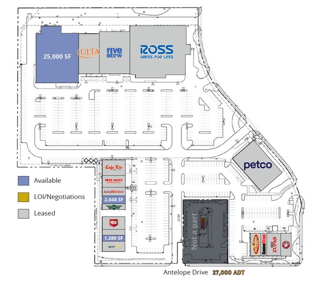 | Superficie totale disponible | 25 000 pi² | Façade | 1 298’ le Antelope Dr |