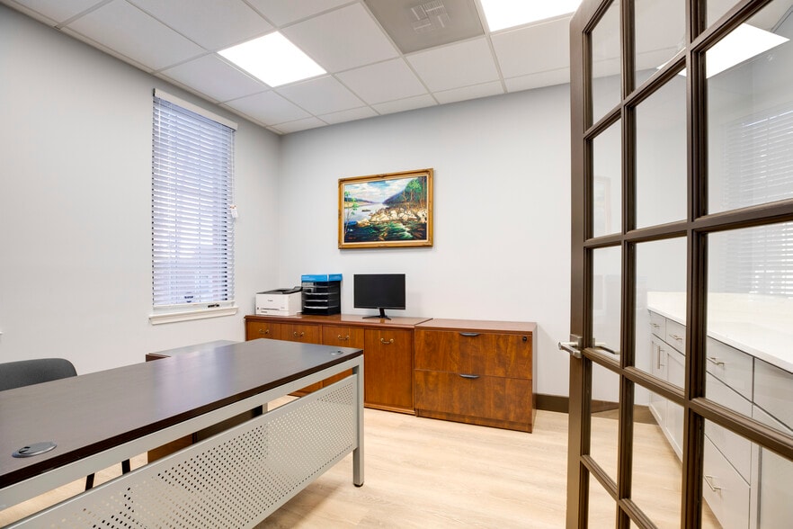 Entry-level / NO STAIRS unit in the desirable Evergreen Office. Recently updated, Glass walls / doors off the reception area and conference room, New Kitchenette, coffee sink bar, New luxury engineered flooring, 2 private offices backing to trees, restroom, storage space and you can install your own signage on the top of the entrance. Unassigned ample parking, plenty of Parking spaces! Zoned C-2, allow Medical office, administrative business, professional services, gallery, and general/professional offices. Easy access to I-495, i395 and enjoy proximity to a wide variety of shopping and restaurants. Hurry! Won’t Last!!
