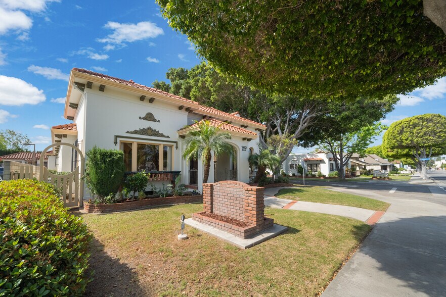 This 1927 Italian Mediterranean is deeply rooted in the history of the City of Orange. Formerly home to established law offices and notable political gatherings, the property—affectionately known as the “Smith Residence” represents a rare opportunity to acquire a landmark setting with both character and presence. The property features a predominantly single-level layout on a raised foundation, complemented by a utility basement, private driveway, and sizable detached garage. Its configuration lends itself well to a variety of commercial uses, offering both accessibility and functional flexibility. Inside, the space is defined by an extraordinary level of preserved craftsmanship. Original 1927 artisan canvas walls showcase hand-painted murals, while custom hardwood flooring with inlaid dark walnut accents adds warmth and architectural depth throughout. Expansive rooms with soaring ceilings create an open, airy feel, enhanced by abundant natural light from large, street-facing windows. Architectural details including arched openings, custom millwork, and stained and leaded glass accents contribute to a refined, high-end atmosphere that is particularly well suited for client-facing businesses. The thoughtful layout allows for a seamless blend of open work areas, private offices, and conference rooms, accommodating a wide range of operational needs. Prominent frontage and window exposure provide excellent visibility, while the scale of the interior spaces supports both collaborative environments and more formal, executive settings. A rare blend of historic character, functional design, and commercial adaptability—ideal for professional offices, creative firms, boutique agencies, showroom space, or other specialty users seeking a distinctive and memorable environment.
