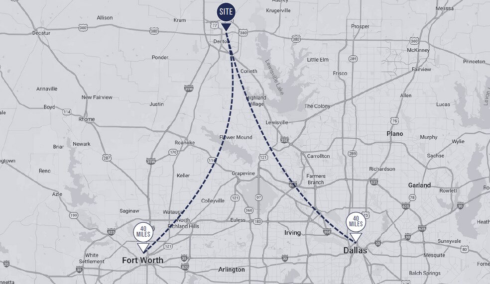 - Strategically located between Dallas and Fort Worth via Route 77, providing strong regional connectivity and metro-wide access.