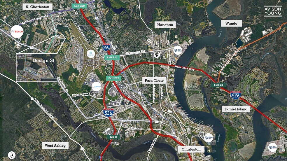 - 2.3mi to I-26 (Exit 209- I26/Ashley Phosphate); 6.5mi to I-526/I-26, 11mi to Port (HLT)
