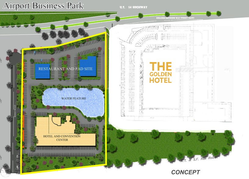 - Sale Price Rate: $3.00 to $8.50 PSF - Lot Size: 1.5 to 7.44 Acres - Zoning: General Commercial - Platted: Diamond Second Addition - Utilities: To Site - Located at the SEC of Ridge and Kellogg (US - 54) - The Alta Survey is available - Over 600 guest rooms within a 1 mile radius - Approx. 11.200 employees within a 1 mile radius, south of the highway - Connected to highway and airport traffic - Next to one of the nation’s top Texas Roadhouse restaurants - Next to Hampton Inn, Hilton Garden Inn & Homewood Suites - Direct access from Eisenhower National Airport - Superior visibility at the airport highway intersection - Area Neighbors: Texas Roadhouse, Red Roof Inn, Boot Barn, Hampton Inn, Cracker Barrel, Cheddar’s, Abuelo’s, Applebees, Lowe’s, Outback, McAlisters, Chick-fil-a, Freddy’s, Uhaul, Meddy’s, Rib Crib, Ihop, Khol’s, Ross, Office