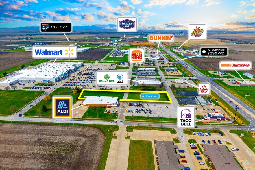 - ±1.54 Acre Commercial Development Site in Pontiac, IL adjacent to Aldi, Walmart, Dollar Tree, Burger King, Arby’s, Taco Bell, and more