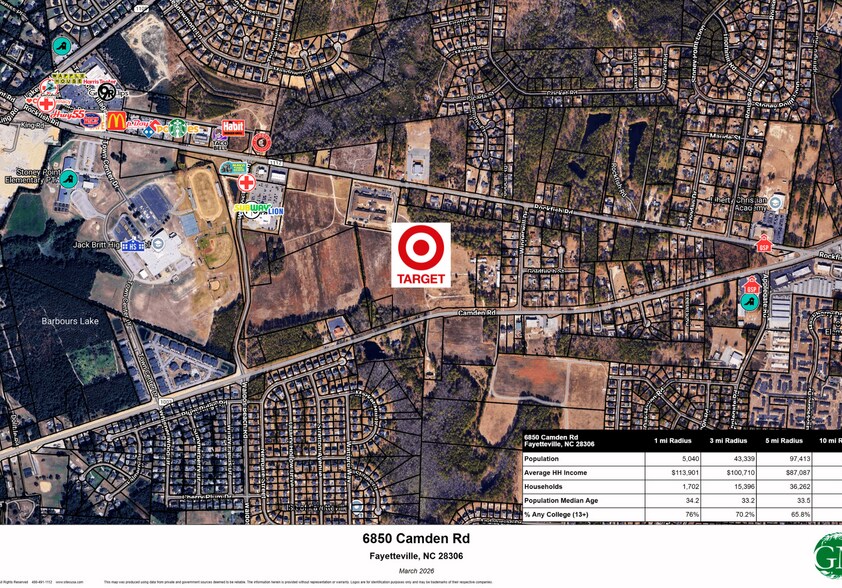 Situated between the thriving Jack Britt community and the growing Hope Mills market, the site benefits from a strong consumer base supported by high household incomes and a dense population. Convenient access to I-295 via the Camden Road ramp enhances connectivity to Fayetteville and the broader region. The surrounding area includes schools, established neighborhoods, and active commercial corridors, driving consistent traffic and demand for additional services. With Target anchoring the location, future development will benefit from increased customer draw, high visibility, and long-term stability.