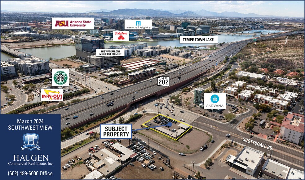 Site du trophée situé au NEC de la boucle 202 et du chemin Scottsdale, à l'adresse de Tempe, mais situé dans le comté de Maricopa. Actuellement exploité comme lot de camions usagés. Emplacement irremplaçable dans un lieu urbain dense. Disponible pour bail foncier seulement. Recherche d'un locataire de crédit à long terme.