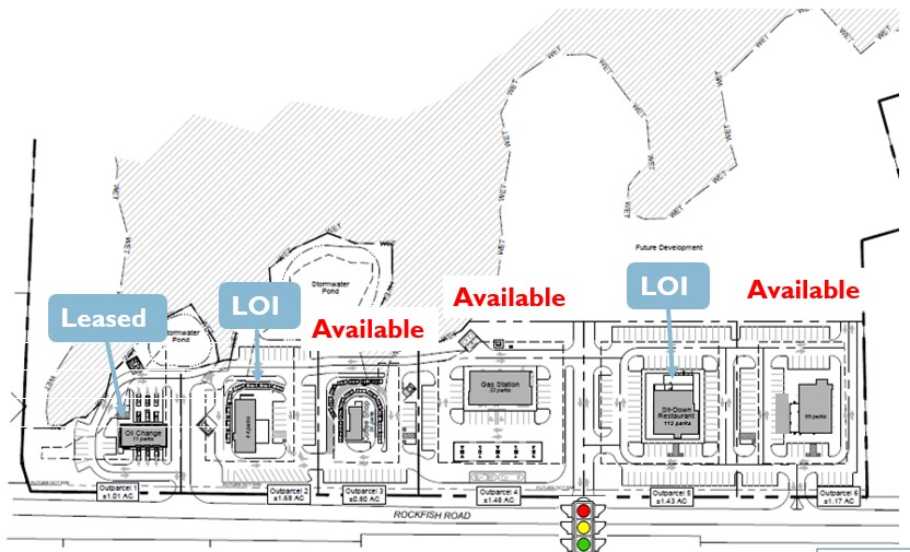 Rockfish Landing offers ±12 acres of prime developable land across six outparcels in Fayetteville’s fastest-growing corridor. Positioned near top-rated schools (Jack Britt High School and Stoney Point Elementary) and major retail anchors like Harris Teeter, Publix, and Food Lion, this site is ideal for retail, dining, and service concepts. The property benefits from strong demographics, with a 2023 average household income of $74,538 within one mile and over 106,000 residents within five miles. Traffic counts on Rockfish Road reach 14,900 VPD, ensuring excellent visibility and access.