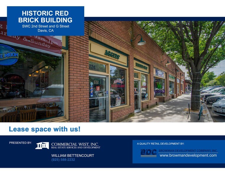 - Located at a major intersection in Downtown Davis with strong pedestrian visibility.