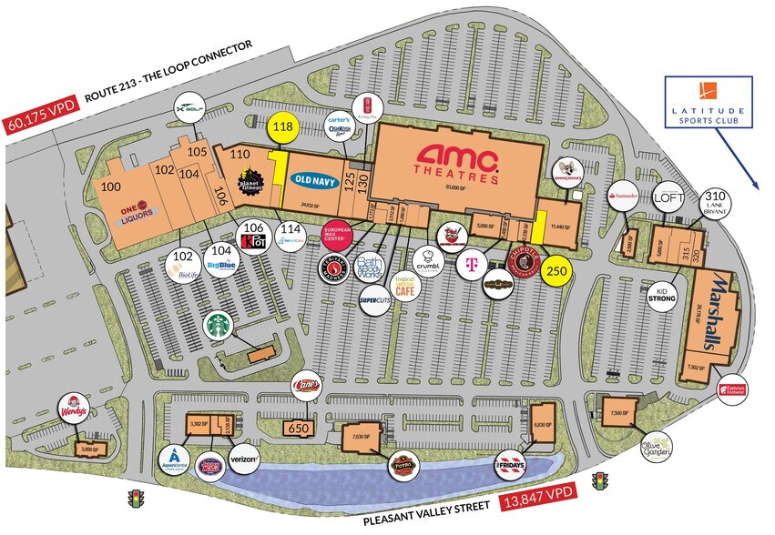 340,000 sf on 46 acres, highly trafficked open-air regional shopping center w/ 2,464 parking spaces. Focal point of the area’s retail corridor that includes Target, Wal-Mart, Market Basket, Home Depot, Latitude Sports Club, and popular local farm stand store Mann Orchards. Over 30 shops, eateries, & services. AMC: 20 Screen Theatre, Marshalls, Old Navy. Two signalized entrances.