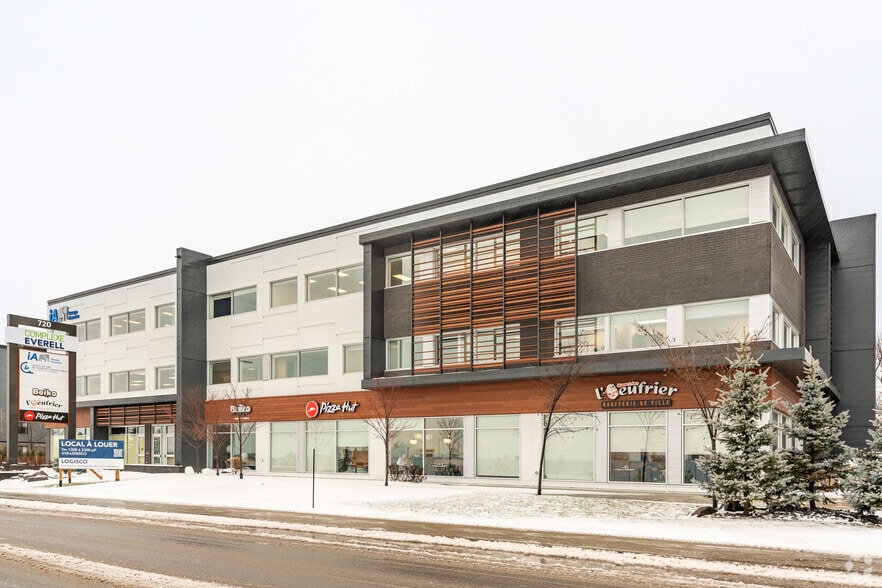 Le Complexe Everell est une propriété à usage mixte de trois étages située au 720, rue d’Everell à Beauport, Québec. Construit en 2020, le complexe couvre environ 30 000 pieds carrés et offre des espaces commerciaux et de bureaux. Il est idéalement situé près de l’Autoroute Félix-Leclerc et à proximité de plusieurs projets résidentiels, hôtels et services essentiels. Des options de transport en commun ainsi qu’un stationnement extérieur sont disponibles sur place. Le bâtiment est équipé de bornes de recharge pour véhicules électriques et d’un accès par ascenseur.
