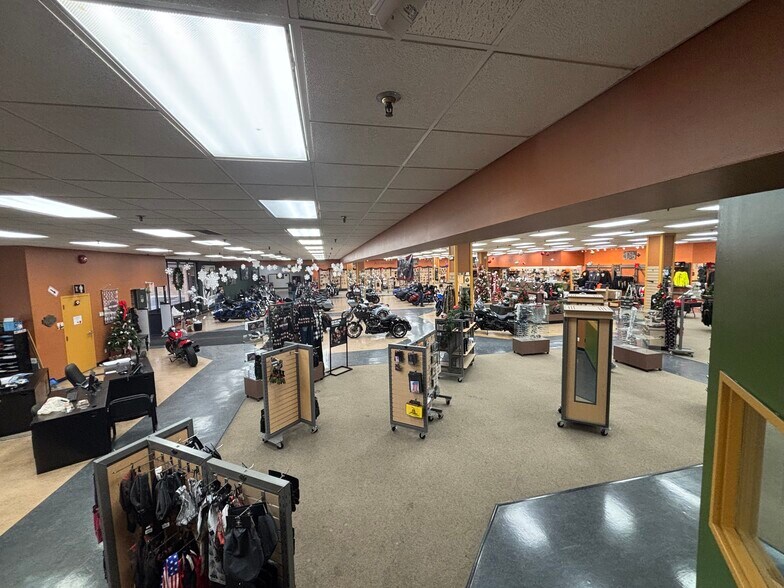 Prime retail location on the North-West side of Elkhart, IN, just south of the Elkhart Municipal Airport. The building features a large showroom with offices and restrooms, separate service entrance with waiting room, service area, parts area with parts counter, warehouse area with offices, restrooms, and breakroom, compressor room, dyno tuning room for motorcycles, and a security system. The exterior of the building features just over 2 acres of paved parking area, a fenced in storage area in rear of the building, and additional undeveloped land on the northside. The property has an entrance on Bristol St (SR 19) with a large pole mounted sign and multiple entrances on CR 7 with a second large pole mounted sign. The owner may consider a lease option on the property.