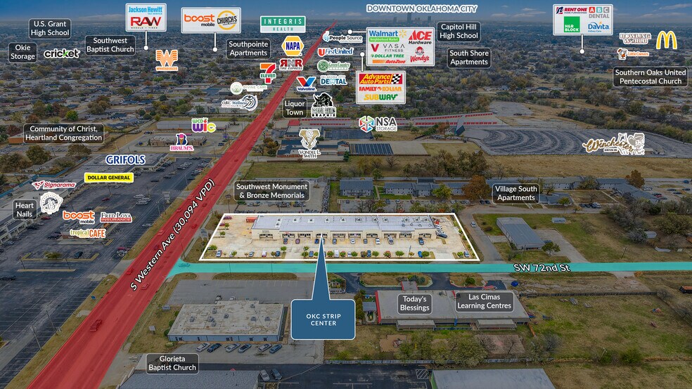 - Positioned on a major south OKC commercial artery with over 30,000 VPD and adjacent national/regional tenants.