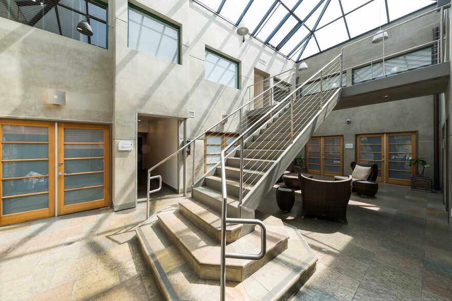 Second floor creative office space with a private restroom in a newly remodeled courtyard building. Hardwood floors throughout. Centrally located on Beverly Boulevard between La Brea and Martel Avenues.
