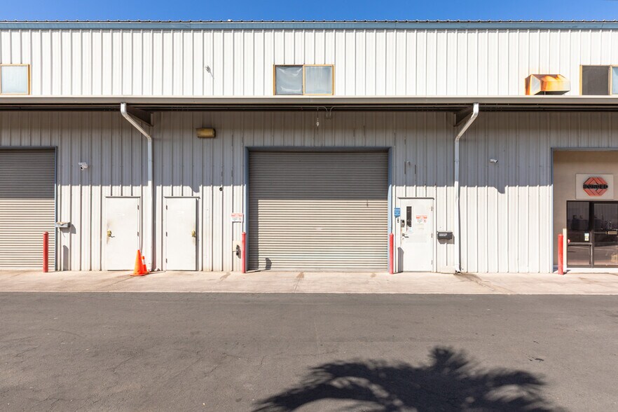 Cal-Cam Centre III is a metal building with a concrete floor. The ground floor offers a 2,036 square-foot warehouse bay with a 12-foot roll-up door, plus a standard door for foot traffic. The space has previously been used as a consignment business and by a pest control company. There are three assigned parking spaces plus two non-assigned spots in front of the building.