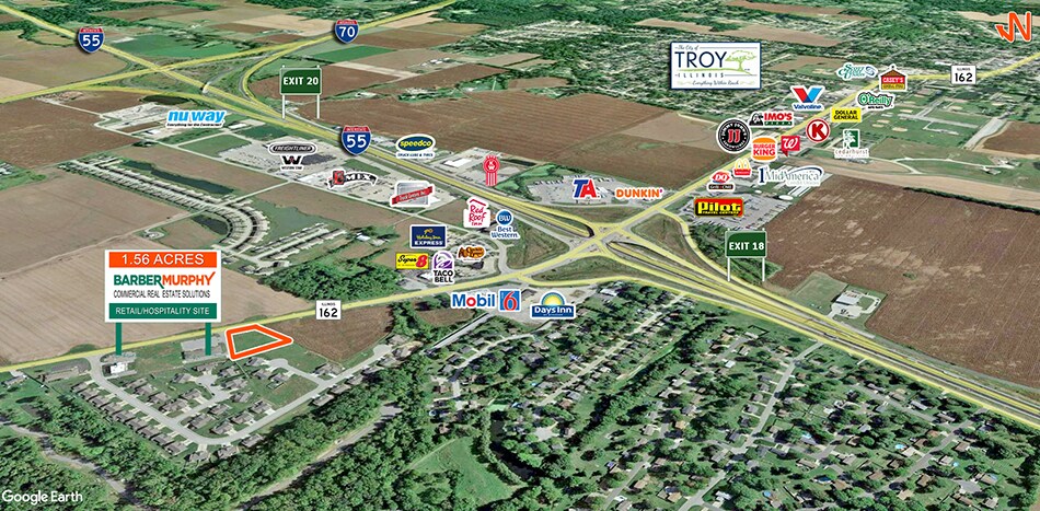 1.56 Acres located 0.3 miles off I-55 (exit 18). 175' of Frontage on IL Route 162. High Traffic Site with 14,500 ADT.