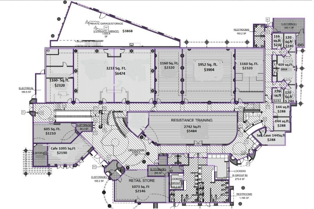 Flexible terms. could also be retail. Rare to find building. Perfect for a gym, yoga, Pilates workout room. His/Her locker rooms available with Dry sauna and spa for additional $$. Lighting and additional reception area is also available. Private office space adjoining the gym. Additional space for cycling can also be added to this space.