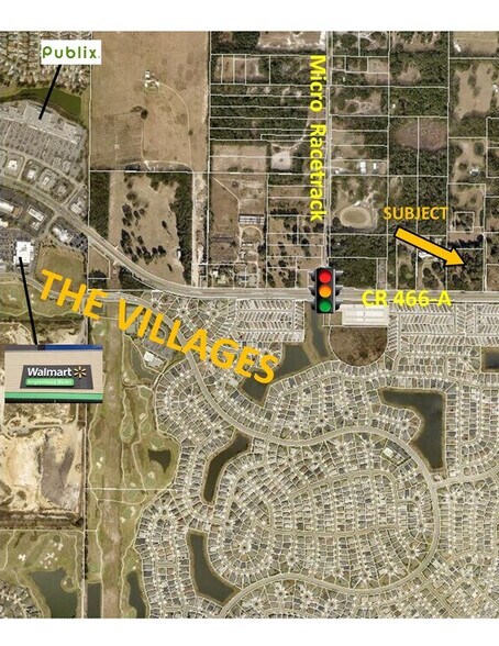 Un site vacant de 7,58 acres sur le CR 466-A situé directement en face de « Villages of Fruitland Park » et à 1 mile à l'est de Colony Plaza (centre commercial ancré Publix) dans The Villages. Il est à niveau et tous utilisables avec une façade de 420 pi. La propriété a un zonage C-2 (Commercial général) avec des égouts urbains qui longent le front de la propriété sur le 466-A et l'eau de la ville située de l'autre côté de la rue ou 1 000 pieds à l'est du même côté de la rue. Nombre de trafic de 17 400 par jour (2022). Ces 7,58 acres comprennent également les clés Alt # 3906813 et 2515490, Excellent emplacement pour les mini-entrepôts, la vie assistée et les soins de la mémoire, le cabinet médical, les soins de santé et le parc de bureaux professionnels.