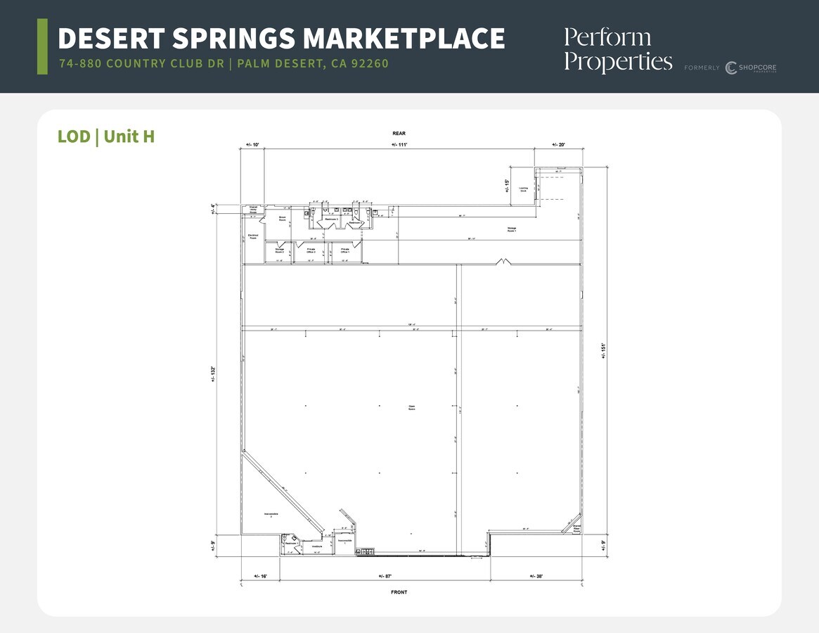 Space H offers a substantial ±20,122 square feet of retail or restaurant opportunity within Desert Springs Marketplace, a premier shopping center in Palm Desert. This expansive suite is ideal for anchor tenants seeking high visibility and access to affluent local and resort clientele. The location benefits from robust daily traffic and proximity to luxury golf resorts, major vacation destinations, and the UC Riverside Palm Desert campus