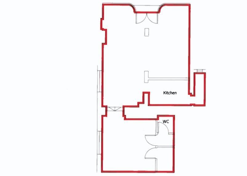 - Former café layout with open seating