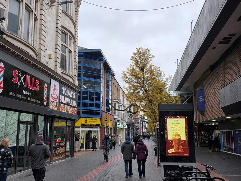 This three-storey property, prominently located on Middlesbrough’s popular high street, was previously occupied by the national charity, The People’s Dispensary for Sick Animals (PDSA). The ground floor comprises a well-proportioned retail space, with ancillary storage, while the first and second floors provide staff and office accommodation. To the rear, a yard with street access offers convenient entry for deliveries. The property benefits from high ceilings, a modern glazed shop front, a ramp-accessible entrance with automatic double doors, and is fitted with toilet and shower facilities, a kitchenette, LED lighting, and air conditioning.