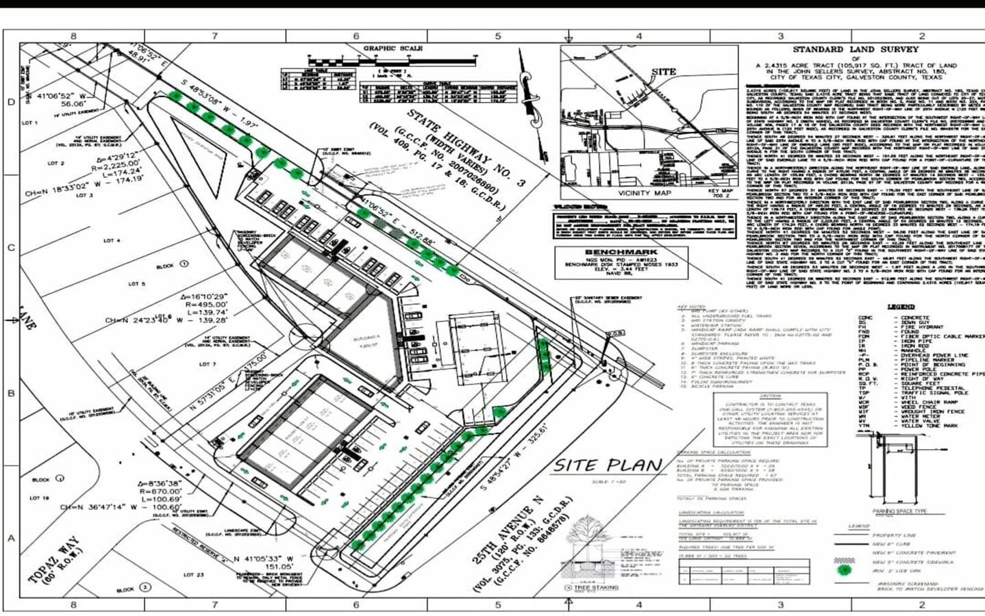 Prime retail opportunity at the intersection of Highway 3 and 25th Ave in Texas City, positioned as an outparcel of the growing Pearlbrook subdivision. This highly visible location boasts traffic counts of over 3,300 cars per day (CoStar 2025) and will be anchored by a high-end C-Store, ensuring strong daily traffic. With no competing retail at this corner, it offers a rare chance to secure a premier spot in an underserved market. The center will feature modern architectural design with high ceilings and an open-air feel, creating an inviting environment for customers. Surrounded by new residential development and ongoing housing growth, the site presents excellent long-term potential for a variety of uses, including coffee shop, hair salon, deli, bar/tavern, urgent care or ER, healthcare services, boutique fitness, restaurants, and bakery. End caps and drive-thru availability provide additional flexibility for operators seeking maximum visibility and convenience.