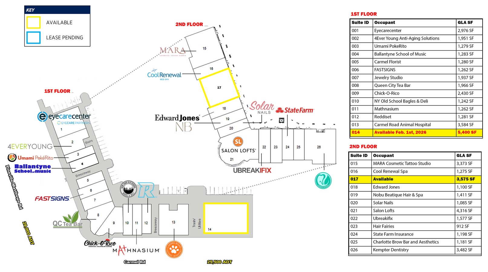 • Carmel Village est situé au cœur du sud de Charlotte, à l'angle de Carmel Road et Pineville Matthews Road (Hwy 51), et bénéficie d'une excellente visibilité sur ces deux artères principales. • Le centre offre environ 800 pieds de façade totale sur la route. • Idéalement situé à proximité de certaines des populations résidentielles les plus aisées de Charlotte, le centre bénéficie également d'une accessibilité facile avec plus de 43 000 employés de jour dans un rayon de 3 miles. • Carmel Village propose une solide diversité de locataires, incluant une variété de restaurants haut de gamme, ainsi que des fournisseurs de biens et de services.